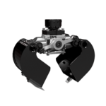 Der Greifer hat sowohl in geschlossenem als auch geöffnetem Zustand eine geringe Höhe. Die kompakte Bauweise sorgt für ein perfektes Leistungs-Gewichts-Verhältnis.