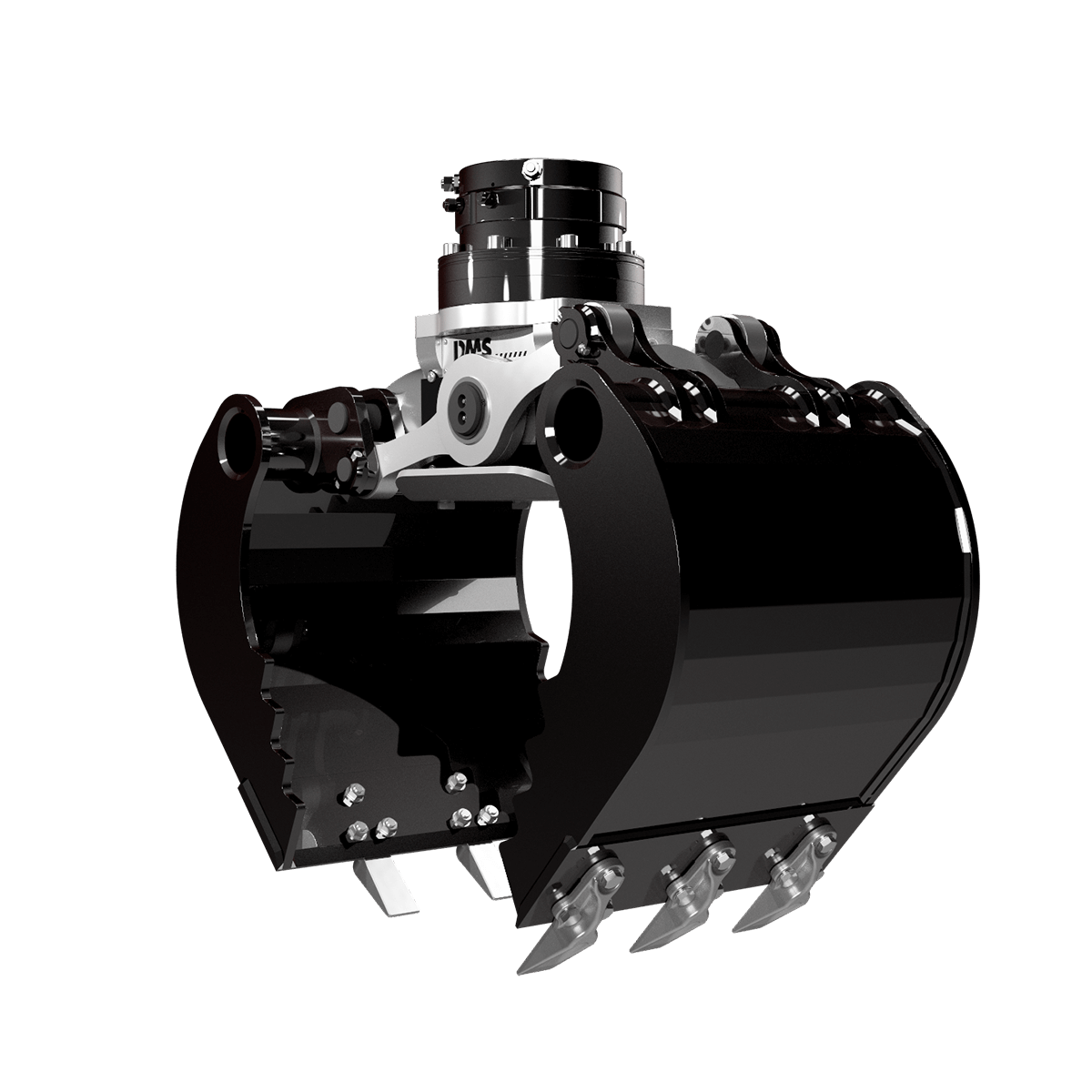 Der eigens entwickelte Zylinder-Antrieb ist das hydraulische Herzstück unserer Greifer. Die zum Öffnen und Schließen erzeugte Kraft ist hier durch den doppelt wirkenden Plungerzylinder mit beidseitiger Ölzufuhr gleich hoch. Im Zylinder selbst ist nicht nur die Kolbenstange komplett umschlossen und geschützt; auch die Ölführung verläuft intern, wodurch schadensanfällige Schläuche im Arbeitsbereich wegfallen.