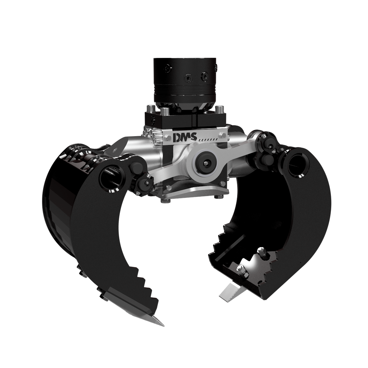 Die Greiferschalen schließen bei großer Öffnungsweite äußerst kompakt, was neben dem Greifen von breiten Objekten auch das Einklemmen von Objekten mit kleinem Durchmesser ermöglicht.