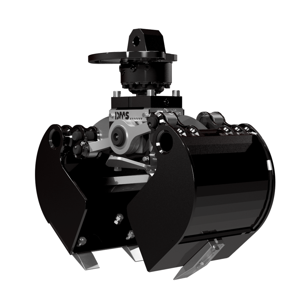 Volumen und Spannweite der Schalen sind in geöffnetem Zustand sehr groß, was zusätzlich zur Grabe-Funktion das Greifen verschiedenster Materialien ermöglicht.